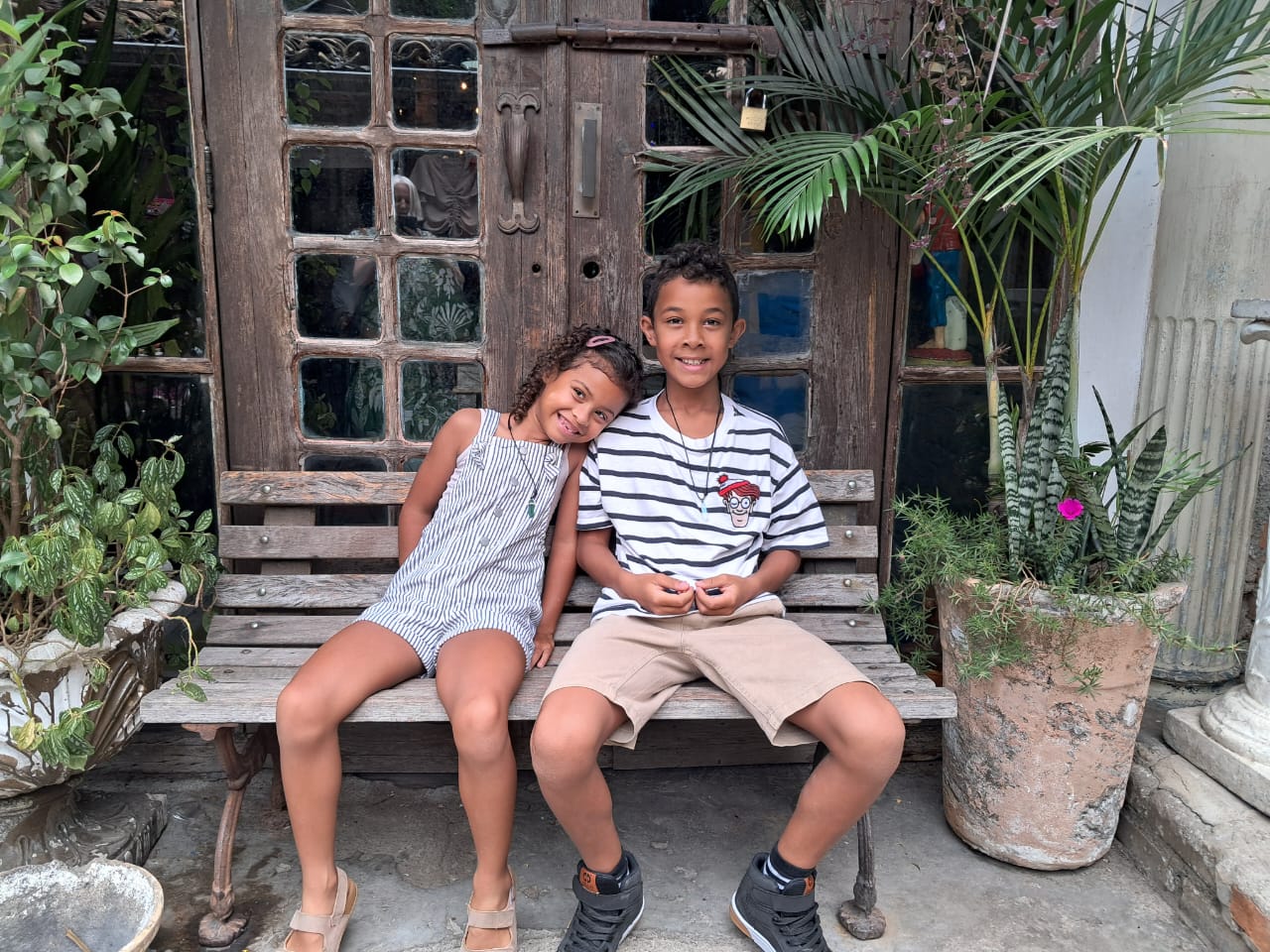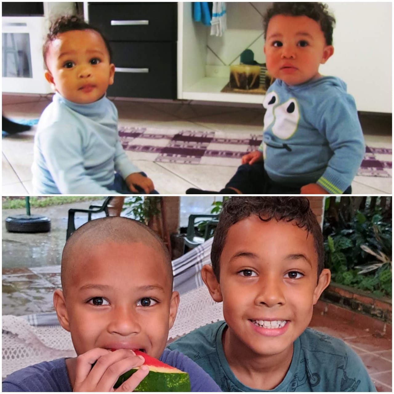 Tauani en ik 15 jaar geleden in het opvanghuis voor meisjes. En onze oudste jongens toen ze 1 jaar waren en nu als 9-jarigen!