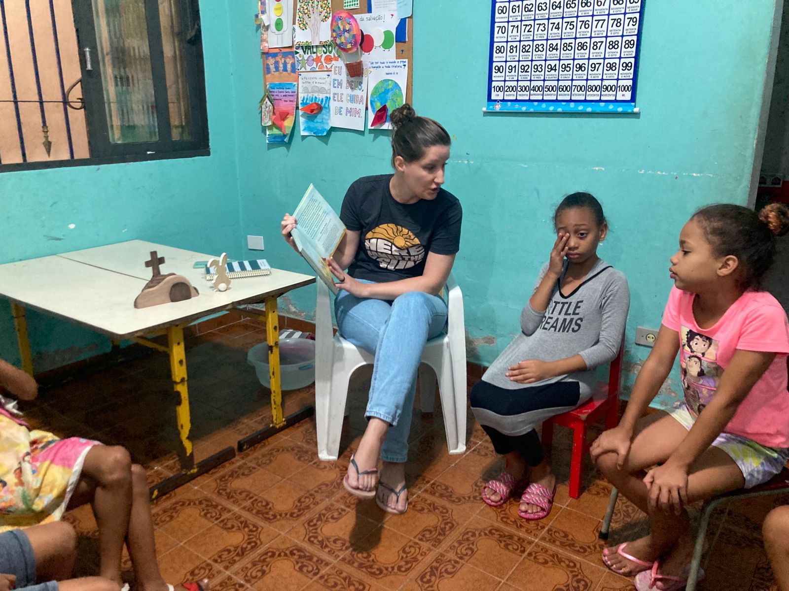 Een aantal weken geleden waren Caio en ik op bezoek bij een soortgelijk project als wijkcentrum De Zaaier, maar dan van onze gemeente hier. Gilberto en Cida, een al wat ouder echtpaar, zijn een paar jaar geleden gestart met een wekelijks programma voor kinderen uit een nabijgelegen krottenwijk en ze zitten nu in de fase waar wij als wijkcentrum De Zaaier zo´n 14 jaar geleden in zaten: zo´n 30 kids van allerlei leeftijden bij elkaar in een geïmproviseerde ruimte met vooralsnog een heel klein team en maar weinig financieel support. We waren uitgenodigd om wat te vertellen over zending en ons levensverhaal voor een groep van 25 kids. Het werd een hele leuke, luidruchtige middag! Een mooie kans om de kids aan het denken te zetten, maar ook een mogelijkheid om dit enthousiaste echtpaar met een hart van goud te kunnen bemoedigen en ervaringen uit te wisselen. Er is zoveel nood, zoveel werk te verzetten, zoveel kansen om Gods liefde uit te delen! We bidden dat God hun werk in die wijk zegent, dat we het mogen zien groeien en dat Hij zal voorzien in meer mensen & support voor dit wijkcentrum.